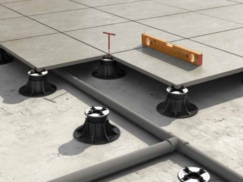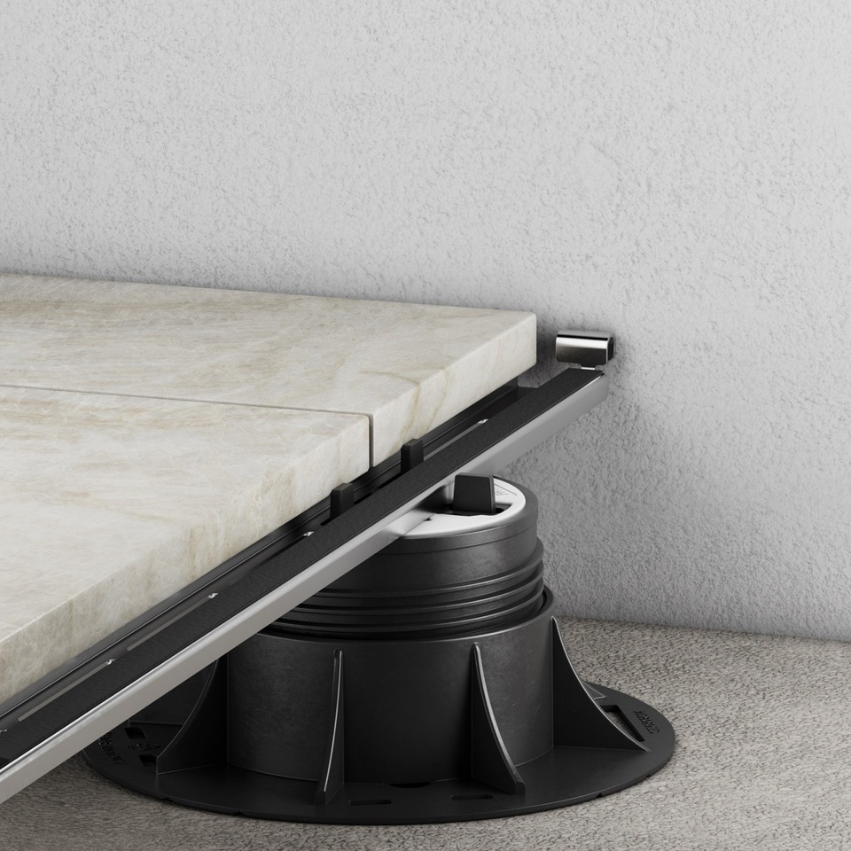 A kültéri aljzatok esetében a lejtéssel kialakítása különösen fontos momentum a vízelvezetés miatt. Ez azonban kihívást jelent a burkolás során, ha végeredményként teljesen sík járófelületet szeretnénk kialakítani. Az állítható szintezőlábak lehetővé teszik, hogy a lejtős aljzaton vízszintes, stabil felületet alakítsunk ki.